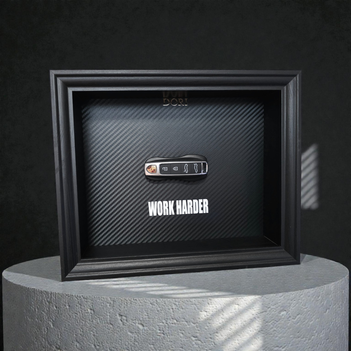 Šis DORI kolekcijos paveikslas su Porsche raktu sukurtas taip, kad perteiktų prabangos minimalizmą ir aiškią motyvacinę žinutę.