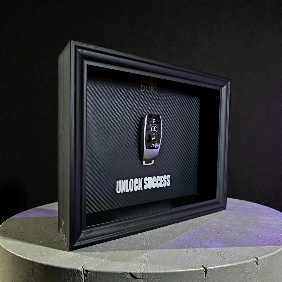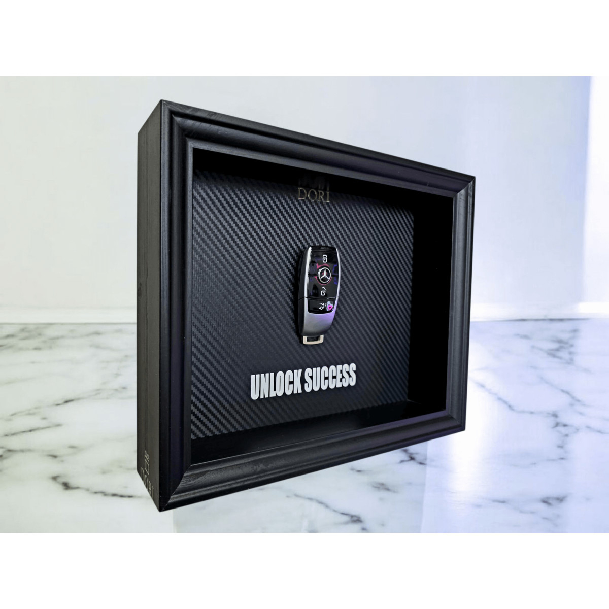 Šis DORI kolekcijos paveikslas su Mercedes raktu sukurtas kaip kasdienis priminimas, kad kiekvienas žingsnis gali atrakinti naują etapą. Juodas rėmas, anglies pluošto fonas ir tikras automobilio raktas sukuria prabangų, solidų akcentą, tinkantį tiek moderniam interjerui, tiek darbo aplinkai.