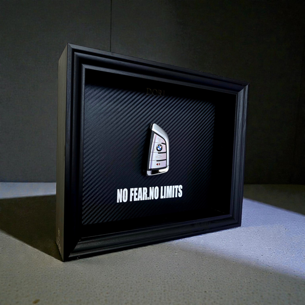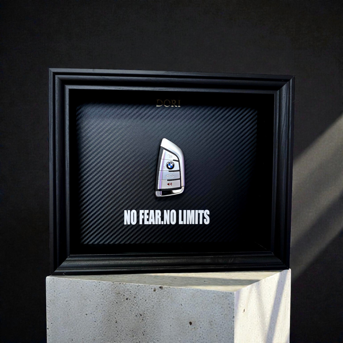 Šis DORI kolekcijos paveikslas su BMW raktu sukurtas motyvuoti tave žengti pirmyn net tada, kai atrodo sunku. Anglies pluošto fonas, juodas rėmas ir tikras automobilio raktas sukuria prabangų akcentą, kuris ne tik papuoš interjerą, bet ir primins – tavo kelias priklauso tau.