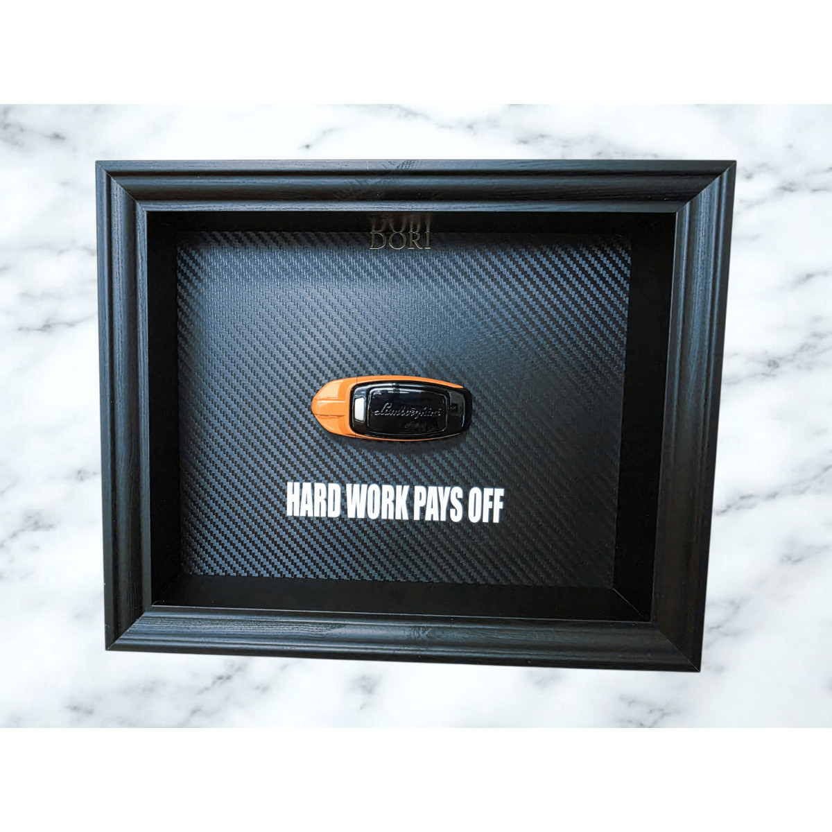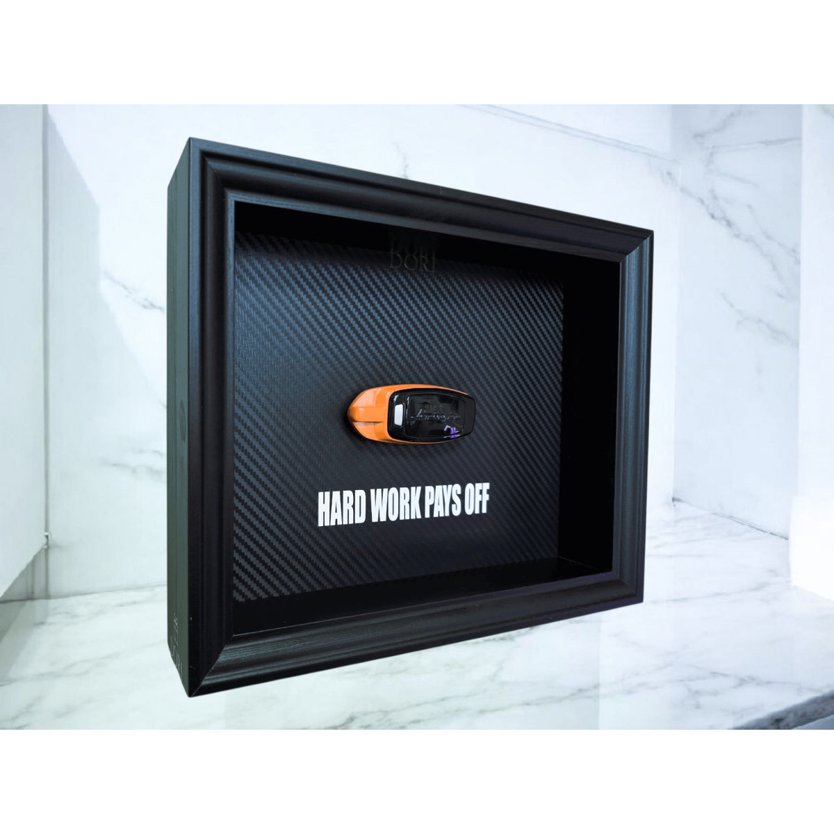Šis DORI kolekcijos paveikslas su Lamborghini raktu sukurtas žmonėms, kurie nebijo kelio, reikalaujančio pastangų. Anglies pluošto stiliaus fonas ir juodas, gilus rėmas sukuria prabangų, ryškų akcentą, o minimalistinis dizainas leidžia žinutei kalbėti aiškiai: tavo pastangos bus įvertintos.