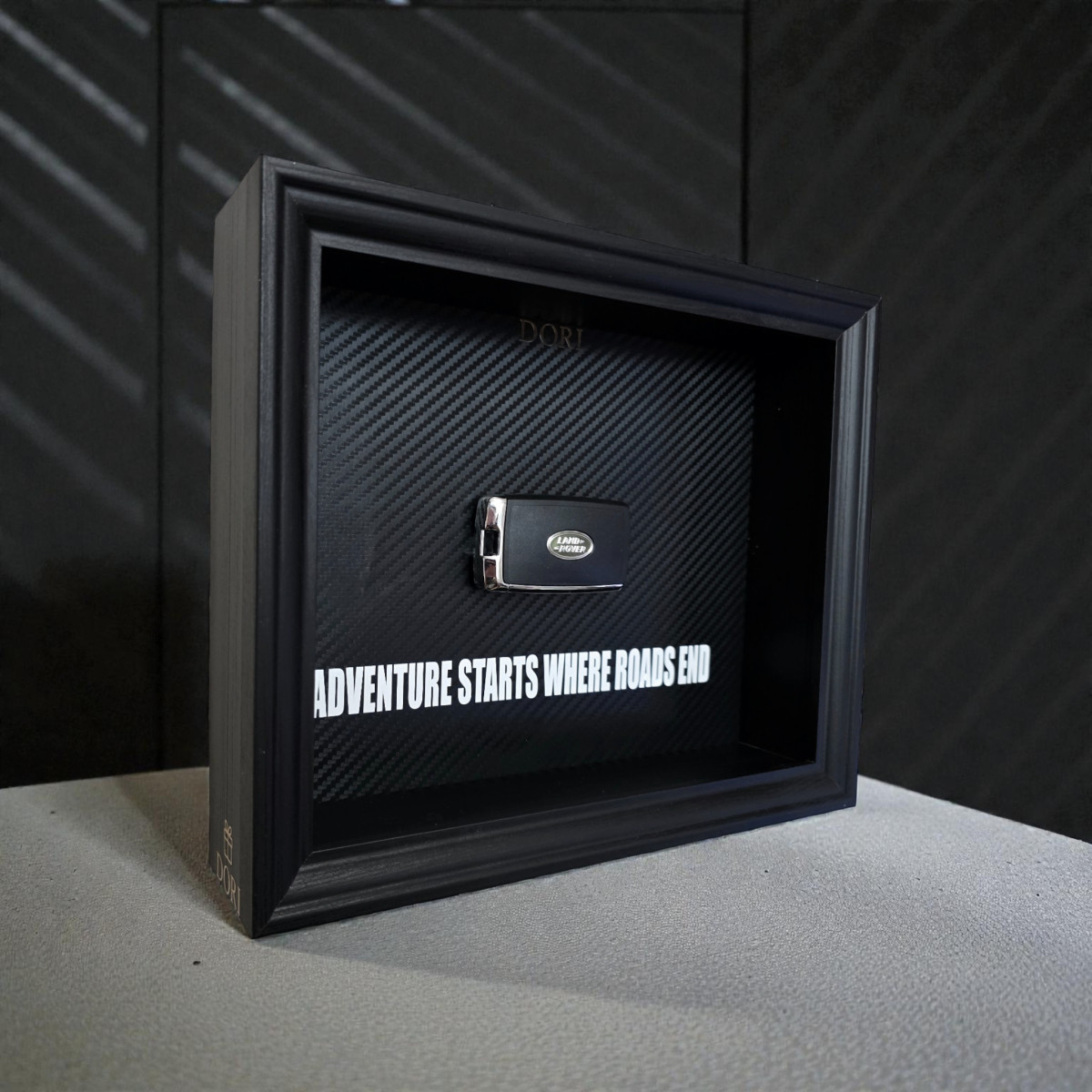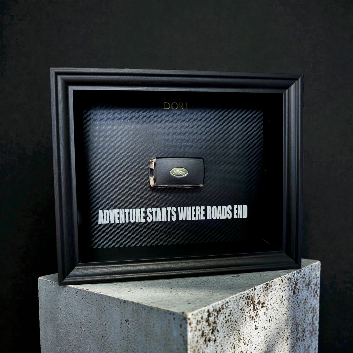 Šis DORI kolekcijos paveikslas su tikru Land Rover raktu – puiki interjero detalė tiems, kurie gyvena nuotykiams, vertina išskirtinį komforto ir pravažumo derinį. Anglies pluošto tekstūros fonas pabrėžia tvirtumą, o masyvus juodas rėmas suteikia kompozicijai prabangos.