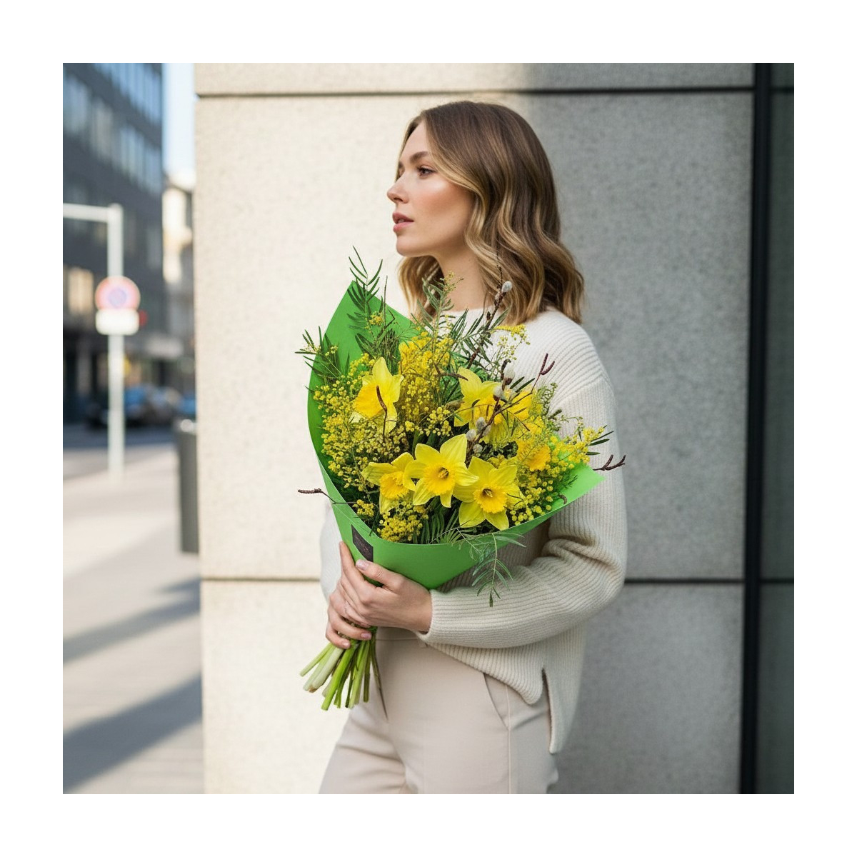 Nuostabi dovana! Pavasariškų narcizų puokštė, ryškioje pakuotėje (spalva gali kisti), galite rinktis skirtingus dydžius, su meile paruošime ir pristatysime į namus Vilniuje, ar kitame Lietuvos mieste!
