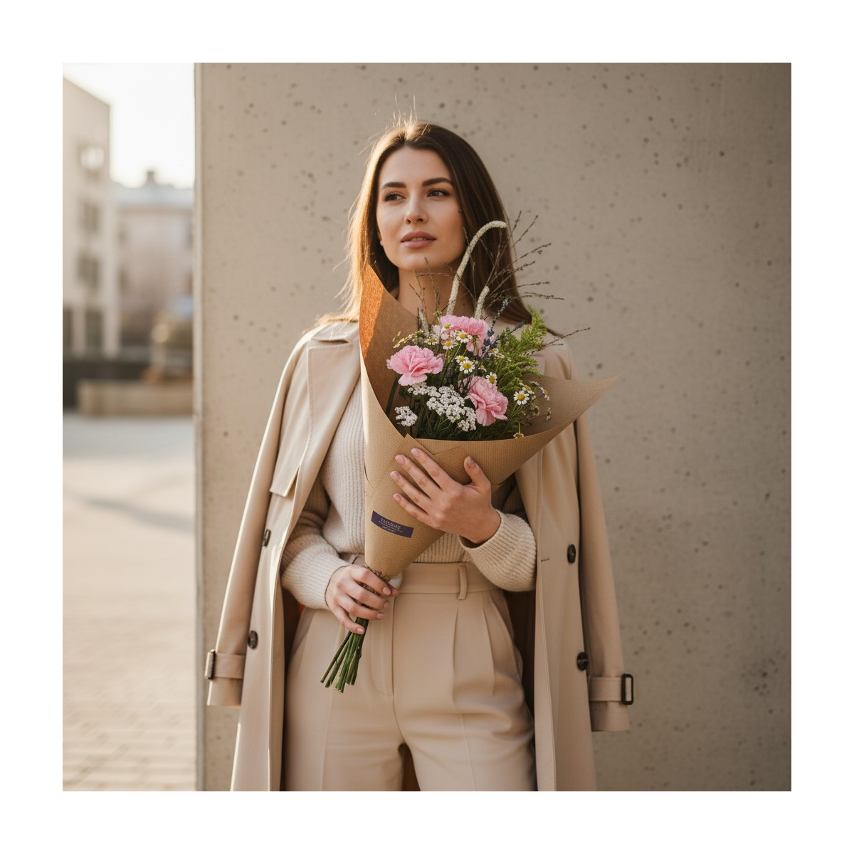 *SVARBU! Nuotrauka pateikiama, kaip pavyzdys, gėlių rūšis arba spalva (išlaikant piniginę vertę) ir pakuotė, pagal sezoniškumą ir tuo metu turimą gėlių asortimentą, gali keistis. Floristika – kūrybinis ir dinamiškas procesas, neįmanoma dukart paruošti tokios pačios kompozicijos. Nuotraukoje pavaizduotas XXS dydis.