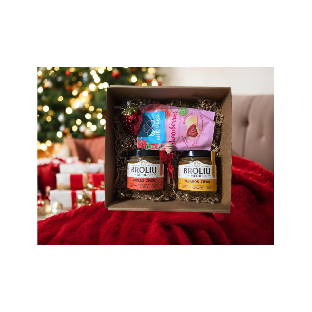 „Golden Honey Christmas Box“ – tai šventiškas, šilumos ir jaukumo kupinas rinkinys, sukurtas tikriems saldumo ir natūralumo mylėtojams. Dovana tinka tiek šeimai, tiek kolegoms ar mokytojams – visiems, kurie vertina kokybišką medų, kalėdiškas detales ir subtilų rūpestingumą. Rinkinys skleidžia namų šilumos atmosferą, o jo turinys puikiai tinka žiemos vakarams, arbatos ritualams ir mažoms kasdienėms šventėms. Tai dovana, kuri sušildo ne tik skonį, bet ir nuotaiką.