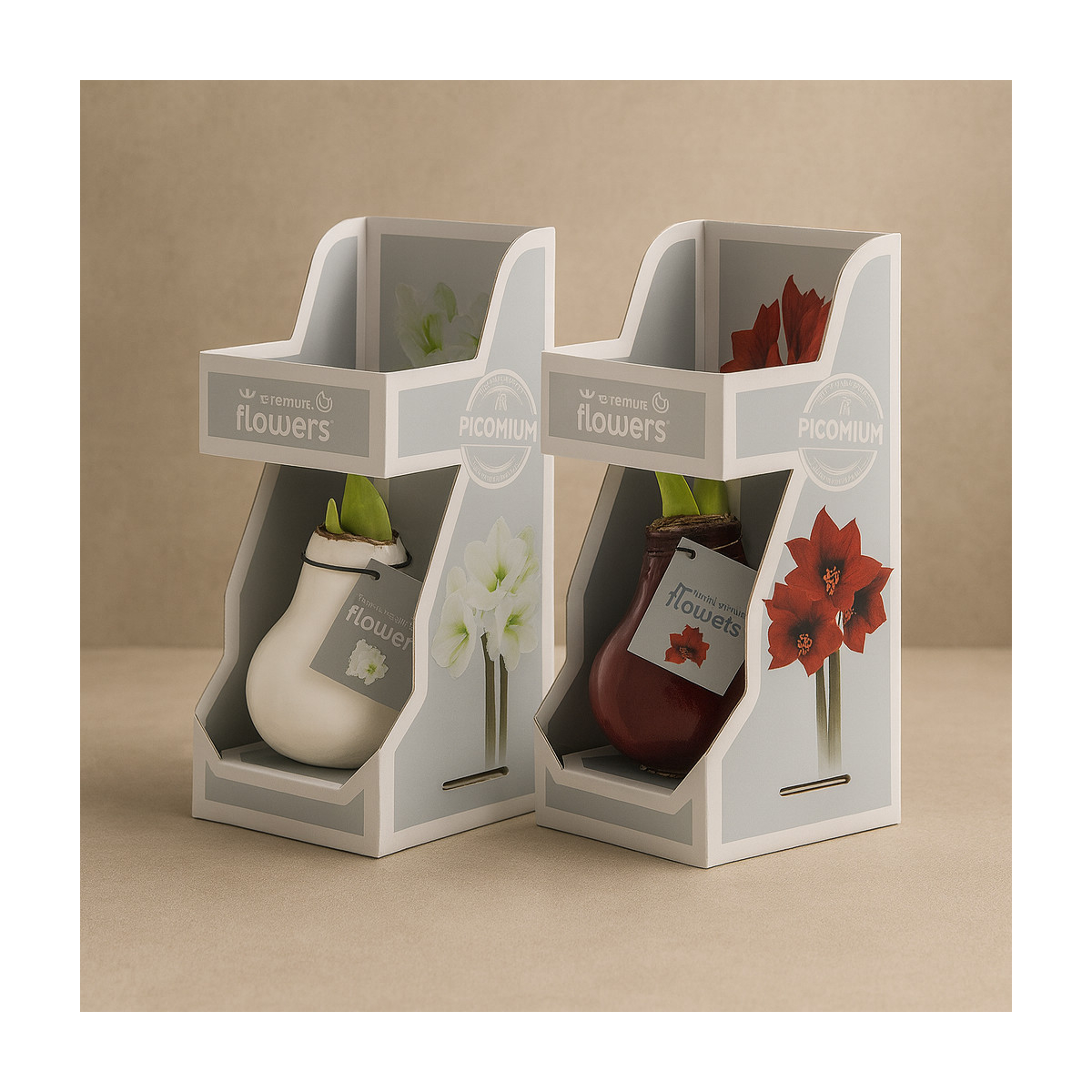 Šis amarilio svogūnėlis yra padengtas specialiu vaško sluoksniu, todėl žydi be žemės, be vandens ir be jokio papildomo rūpesčio – pakanka pastatyti jį šviesioje vietoje ir laukti, kol išskleis įspūdingus žiedus.