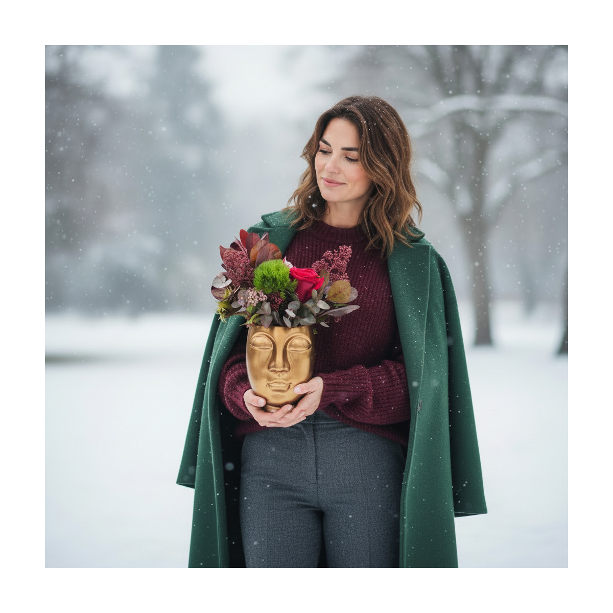 Išskirtinė ir elegantiška gėlių kompozicija auksinės spalvos dekoratyviniame vazone – tikras akcentas interjere ir ypatinga dovana svarbioms progoms. „Auksinė Ledi“ kuria prabangos, estetikos ir šilumos pojūtį, todėl puikiai tinka tiek dovanoti, tiek papuošti namus ar darbo erdvę.