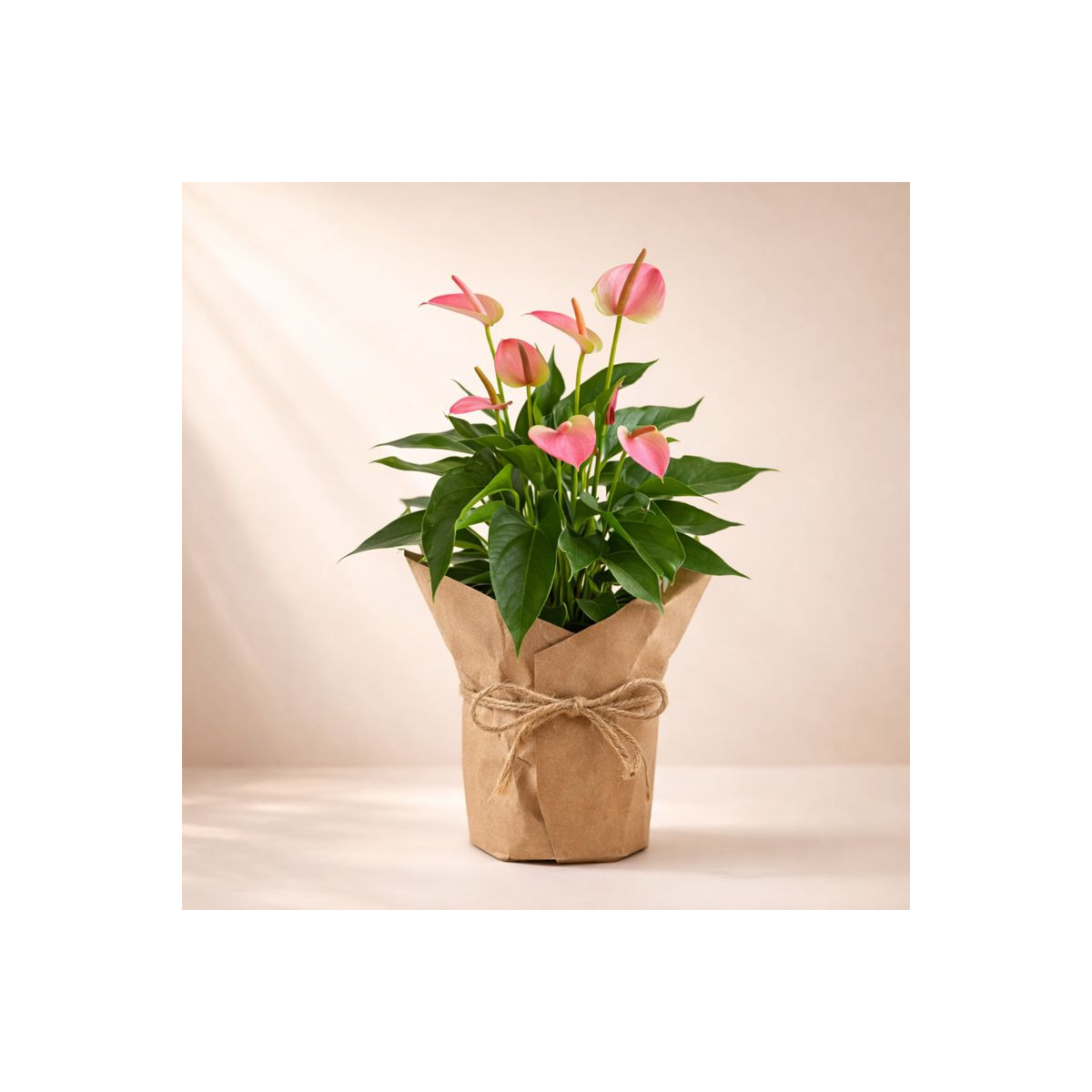 Augalas pateikiamas dailiai supakuotas kraft popieriuje, kuris suteikia natūralumo ir minimalistinės estetikos. Pageidaujant, galima rinktis ir persodinimą į keramikinį vazoną – mūsų floristai kruopščiai parinks tinkamą indą ir pasirūpins estetišku pateikimu.
