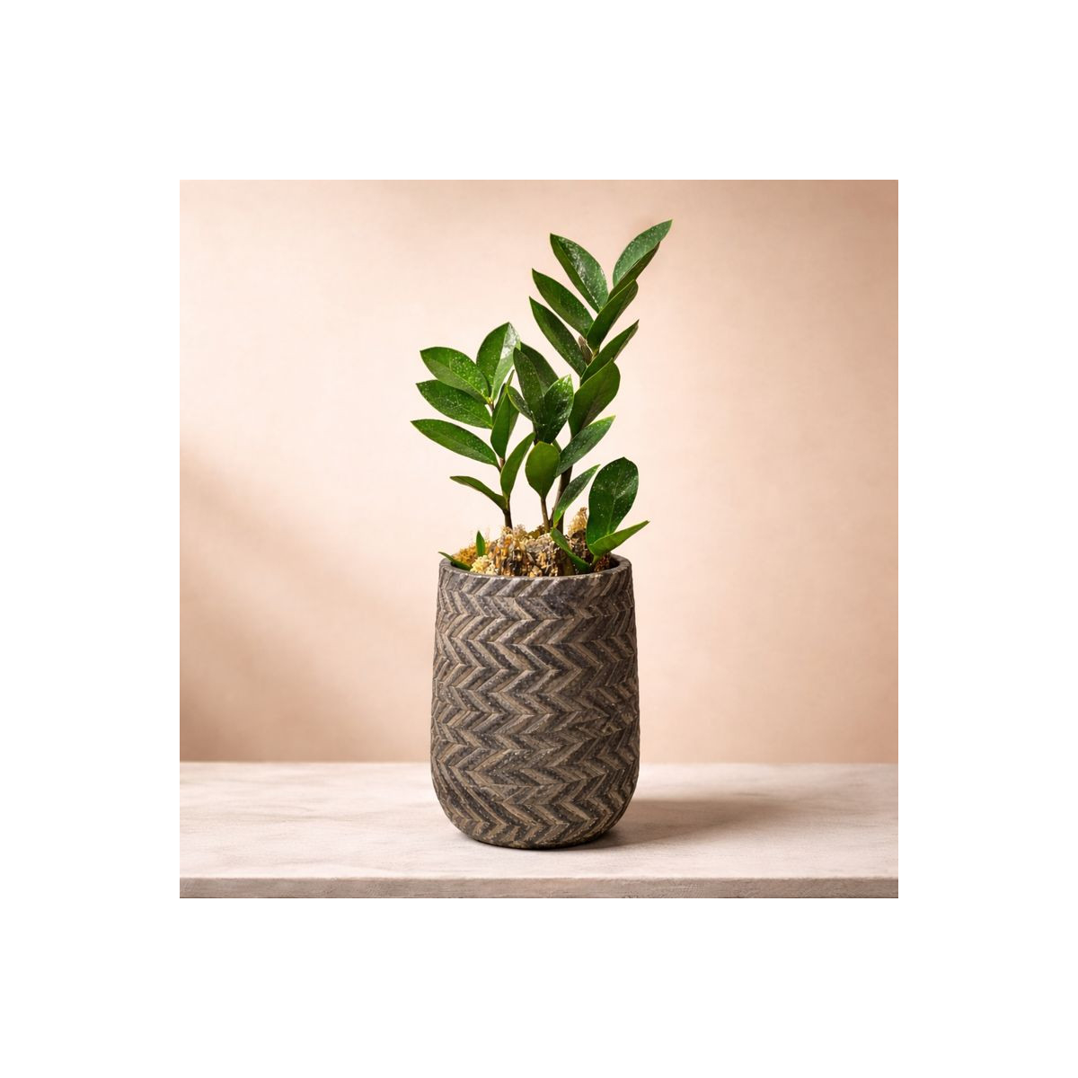 Botaniškai tai zamiokulkas (Zamioculcas zamiifolia) – itin atsparus ir ilgaamžis augalas, vertinamas dėl tvirtų, blizgių lapų ir gebėjimo prisitaikyti prie įvairių aplinkos sąlygų. Jo sodri žaluma suteikia erdvei vizualinės tvarkos, jaukumo ir gyvybės.
