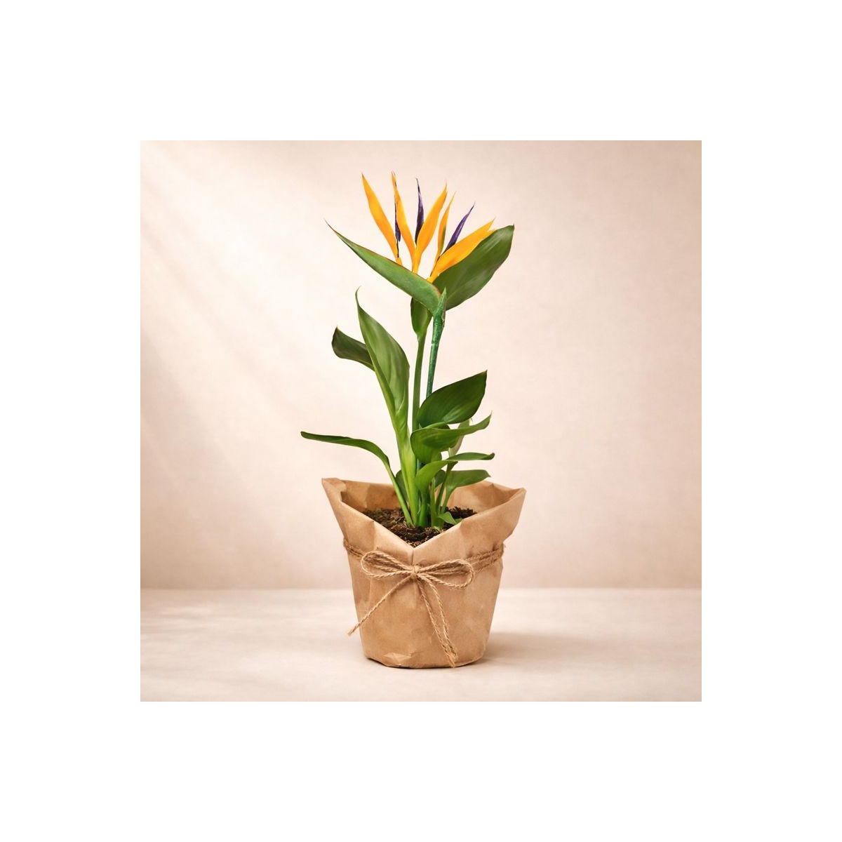 Vazoninis augalas „Strelicija su Žiedu“ – išraiškingas ir modernus augalas, kuris akimirksniu tampa interjero akcentu. Plačiai žali lapai suteikia erdvei gyvybės, o dekoratyvinis strelicijos žiedas vizualiai primena egzotišką „rojų paukštį“, suteikdamas augalui išskirtinį charakterį.
