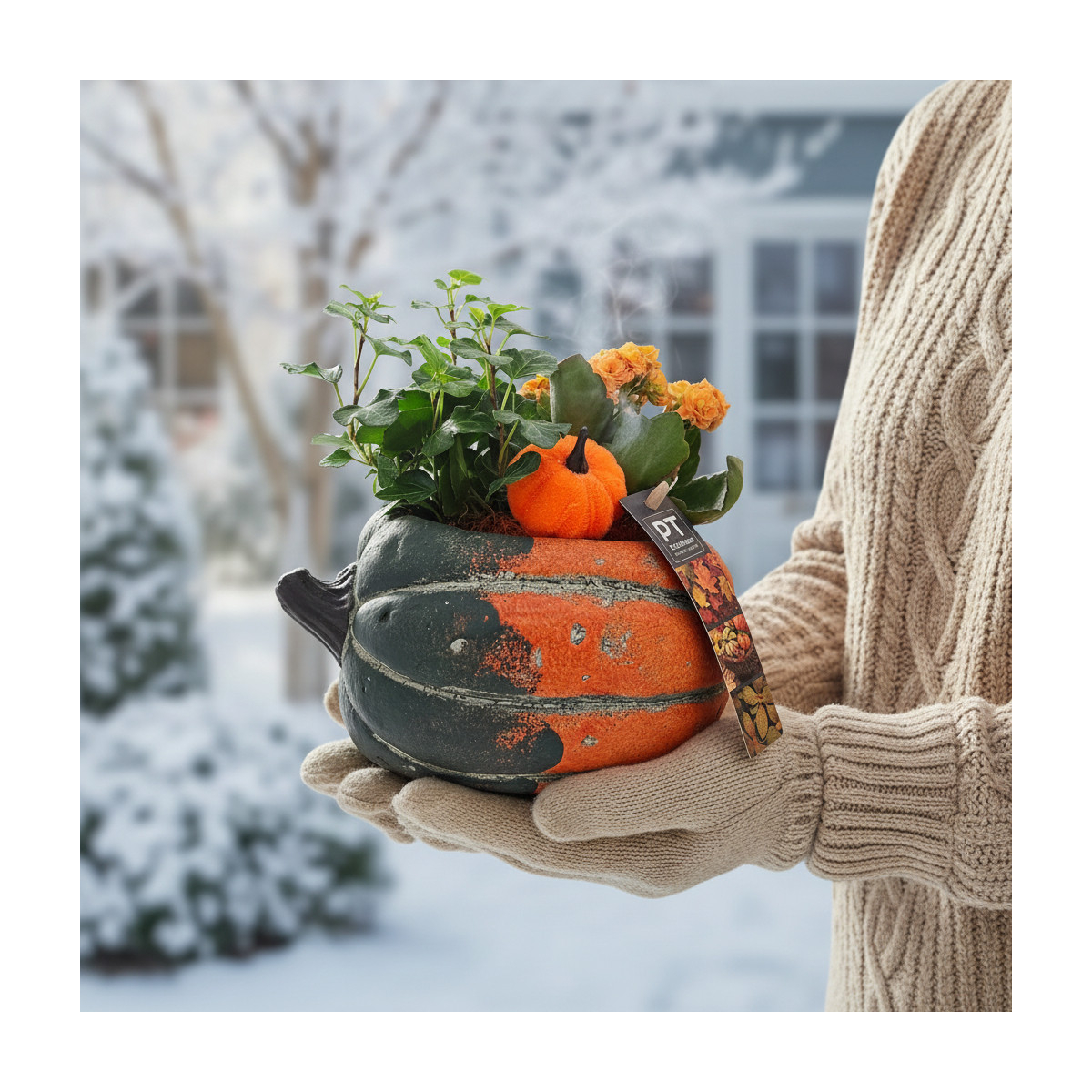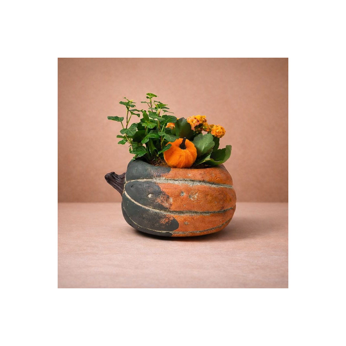 Vazoninis augalas „Moliūgas“ – tai išraiškingas interjero akcentas, kuriame susijungia gyvi augalai ir skulptūriška keraminio vazono forma. Apvali, minkštų linijų forma suteikia kompozicijai jaukumo ir vizualinio svorio, todėl augalas tampa pastebima, bet neperkraunančia detale erdvėje.