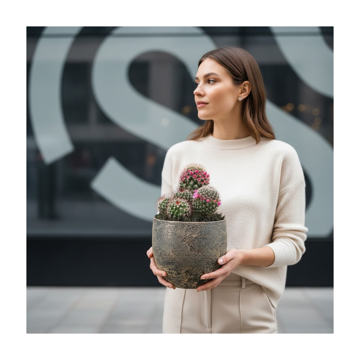 Natūralios formos ir tekstūros suteikia augalui charakterio, todėl kiekvienas kaktusas atrodo savaip ir išlaiko gyvą, neperkrautą estetiką. Tai universalus pasirinkimas, derantis prie įvairių interjero stilių – nuo minimalistinio iki modernaus.